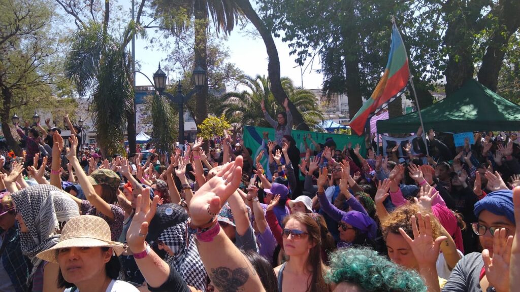 Luego del ritual ancestral, se compartieron las demandas de diversos territorios de nuestro continente y la presencia de la mamá de Tehuel de la Torre fue otro acento que subrayó el impronta del encuentro. La lucha es transfeminista. “¿qué es lo que pasa?, no estamos todes porque aún falta Tehuel!”. Se cantó, y se exigió acompañando el pedido de una madre que es el pedido de todo un sector de la sociedad. Un pedido que nos posiciona, que decreta la certeza del cambio de nombre del encuentro, aunque noviembre siga siendo cita para unas pocas. Seguiremos sin entender esta brecha de odio que se torna inconciliable.