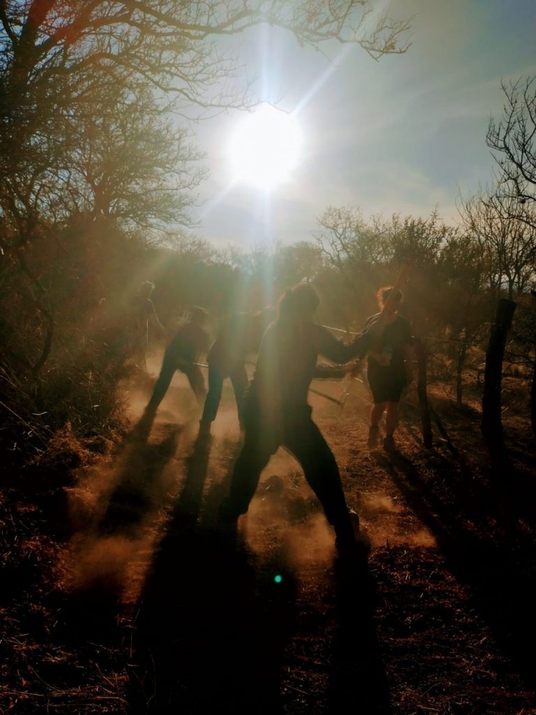 Se presume que en Córdoba la mayoría de los territorios desbastados tienen como inicio una persona que los enciende, con la finalidad de destinar tierras a la ganadería o la construcción inmobiliaria. Laura se reúne todos los meses con un grupo de familias que integran el proyecto “Guardianes del monte”. Son en su grupo 60 familias que hicieron una compra comunitaria de tierras, en un primer momento adquirieron 43 hectáreas y se expandieron después a 60, sumando más familias. La idea es habitar el 10% de la tierra de manera sustentable, y dejar el resto para reproducir el bosque perdido. En las reuniones mensuales debaten como unificar criterios ambientales, cómo desaprender y volver a aprehender una manera más amorosa y armoniosa de habitar en comunidad el mundo.